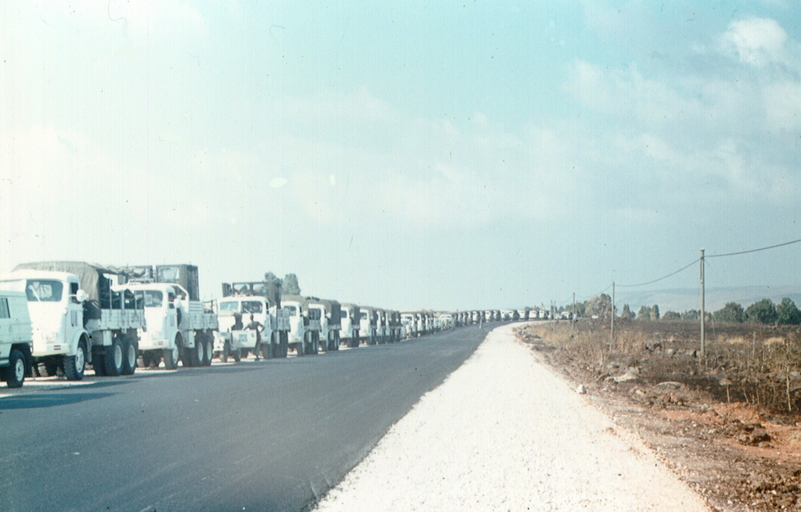 Kurz vor dem Abmarsch treffe ich wieder einen alten Bekannten: Haim Kretsch, meinen LO von Sinai, die Aufgabe hat den polnischen Konvoi durch Israel zu eskortieren. |