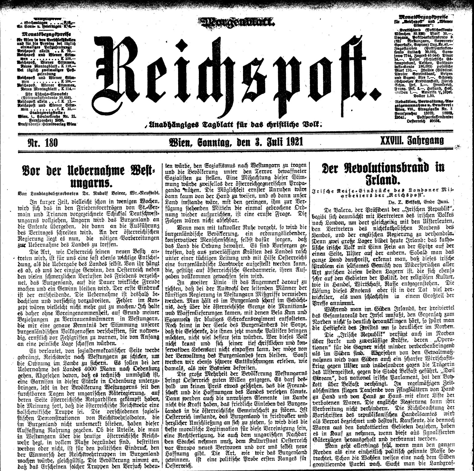 Wenn heute nach 100 Jahren die Zugehörigkeit des Burgenlandes als Erfolgsgeschichte gefeiert wird, scheint neben den Glückwünschen und Festreden auch eine kritische Aufarbeitung des Themas erforderlich. Die folgenden Ausführungen stellen daher den Versucht dar, dieser Forderung gerecht zu werden.