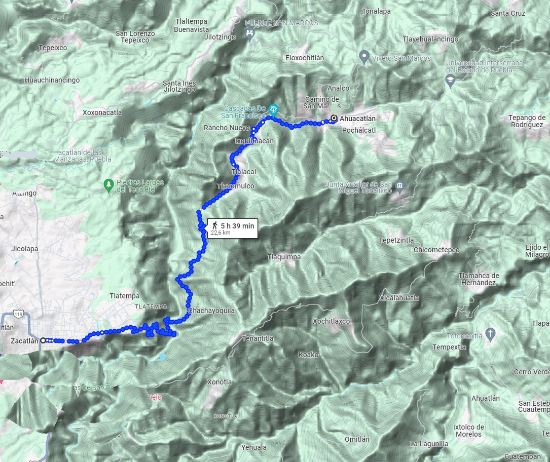 Ahuacatlan, etwa 25 Kilometer ostwärts von Zacatlan, bzw. gleich weit von Tetela entfernt, sollte nach der Einnahme von Tetela angegriffen, wie ihm Major Schönowsky zuvor mitgeteilt hatte. Kurtzrock wollte Schönowsky, der offenbar in Offizierskreisen wenig beliebt war, beweisen, dass er Achuacatlan, das er von seinen Streifzügen auf der Suche nach Pferden kannte, im Handstreich erobern könnte. |