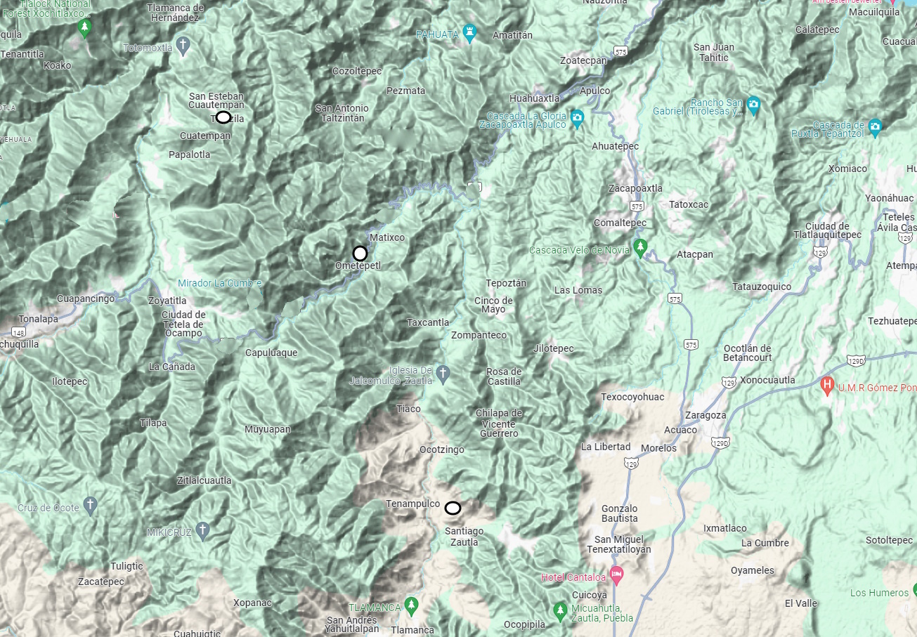Die Offensive Thuns Operationsplan bestand in einem Zangenangriff, ausgehend von Zacapoaxtla über Huahuaxtla und Zaragoza über Zautla auf Xochiapulco und von Westen her aus Zacatlan über Aquixtla auf Tetela del Ocampo. Ziel der Operation war die Vernichtung von Lucas Cuatecommachos in Xochiapulco, sowie von Mendez' Nationalgarden In Tetela del Ocampo, um das dazwischen liegende Gebiet der "Cumbres de Apulko" unter Kontrolle zu bringen. Hierfür standen insgesamt 1300 Mann, eine Gebirgsbatterie mit 6 Geschützen und einige Einheiten Auxiliartruppen aus Chignahuapan, Tulancingo, Zacapoaxtla, Teziutlan und Altalonga zur Verfügung. |  |