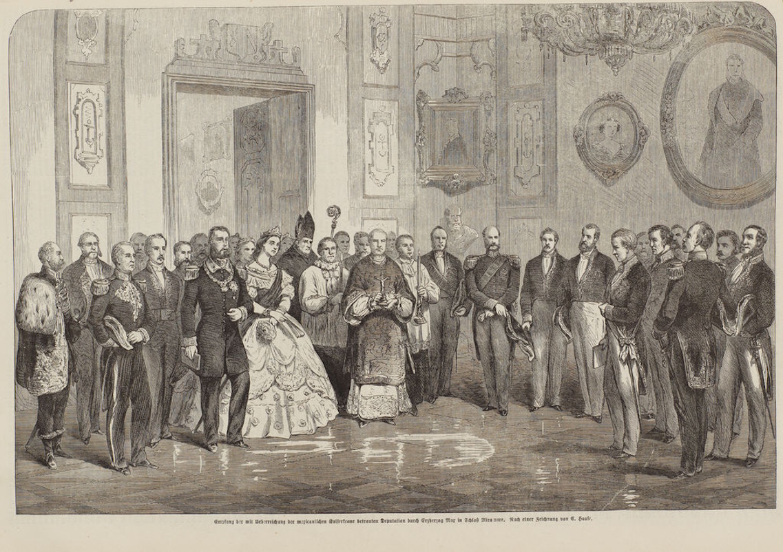 Als am 2. Oktober 1863 die Delegation der mexikanischen Notabelnversammlung in Österreich ankam, blieb ihr fürs Erste ein offizieller Empfang durch Hof und Regierung versagt. Auch der Empfang bei Ferdinand Max ist nur privater Natur.