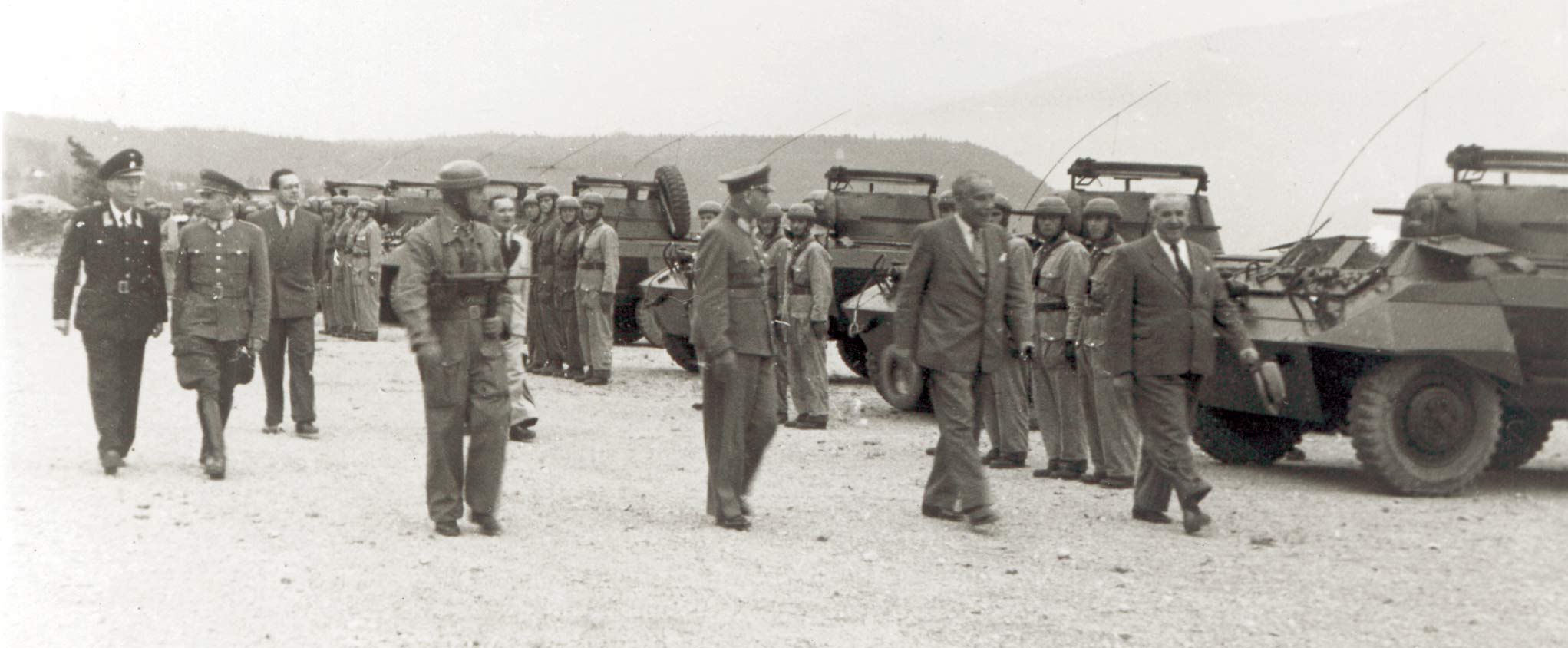 1951 - 1955 Die heimliche Wiederbewaffnung Die Machtübernahme der Kommunisten in Budapest 1947 und Prag 1948, der Ausbruch des Koreakrieges und nicht zuletzt die von den österreichischen Komministen angeregten Arbeiterunruhen und Streikbewegungen im Herbst 1950,bewogen die österreichische Regierung zur Aufstellung einer Bereitschaftstruppe, die vor allem auch von den Amerikanern ausmilitär-strategischen Gründen gefordert wurde. Da jedoch entsprechend der Kontrollabkommen des Alliierten Rats, jede form der Wiederaufrüstung untersagt war, kam es zur Gründung des Wiener und Salzburger Kommitees. als geheime organisatorische Zellen. die Aufstellung der Truppe in Angriff zu nehmen. |