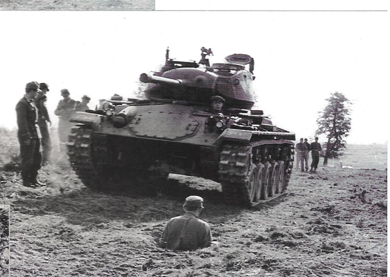 Hauptmann Karl Wohlgemut war Lehrer für Aufklärung und Panzertaktik. "Charly" kam stets mit "Jeep und Hund" und trug die neue amerikanische Panzeruniform. |